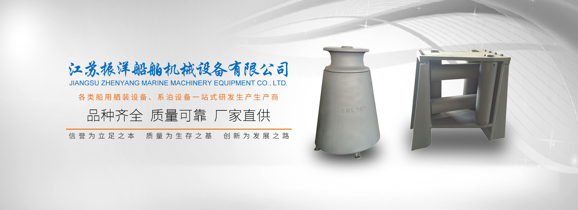 致力于研制生产各类船用舾装设备、系泊设备厂的专业厂家,主要产品有:导缆孔,导缆滚轮以及滚轮导缆钳的生产和销售,导缆滚轮、导链滚轮、导缆孔、系缆桩、滚柱导缆器、人孔盖、弃锚器、船用制链器、船用卷车等,品种齐全,质量可靠。我们的产品广泛配套于国内各大船厂,同时外销日本、韩国、西班牙、挪威、荷兰、意大利等和地区。